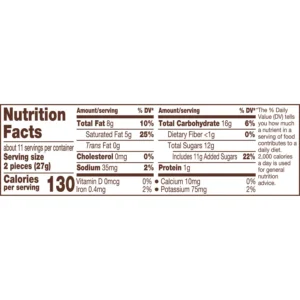 Corn Syrup, Sugar, Coconut, Vegetable Oil (Palm Oil, Shea Oil, Sunflower Oil, Palm Kernel Oil, &/or Safflower Oil), Almonds, Lactose (Milk), Contains 2% or Less of: Reduced Protein Whey (Milk), Chocolate, Skim Milk, Cocoa, Cocoa Processed with Alkali, Hydrogenated Palm Kernel Oil, Corn Syrup Solids, Salt, Whey (Milk), Lecithin (Soy), Vanillin (Artificial Flavor), Sodium Metabisulfite (to Maintain Freshness).