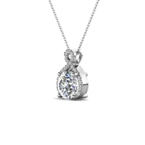 - NECKLACE FEATURES – Expertly crafted for women from high-quality 18k white gold-plated brass, this infinity halo necklace features a radiant 7.5mm (1.5 CT) round centerpiece stone surrounded by 21 shimmering 1mm (.14 CT) accent stones. The pendant measures 10.8mm (W) x 14.8mm (H) with a thickness of 5.7mm and is suspended from an 18-inch chain, secured with a lobster clasp for a comfortable fit.