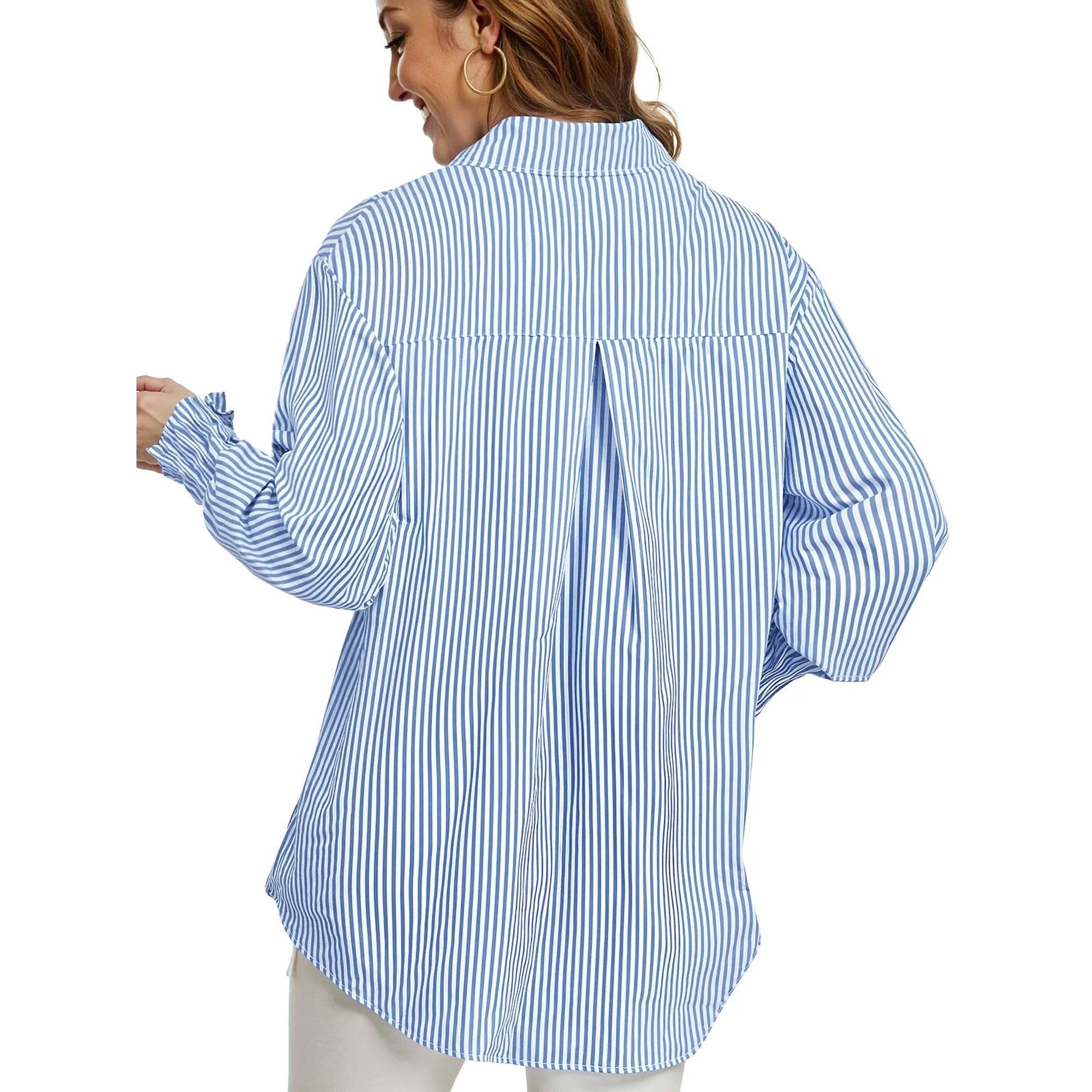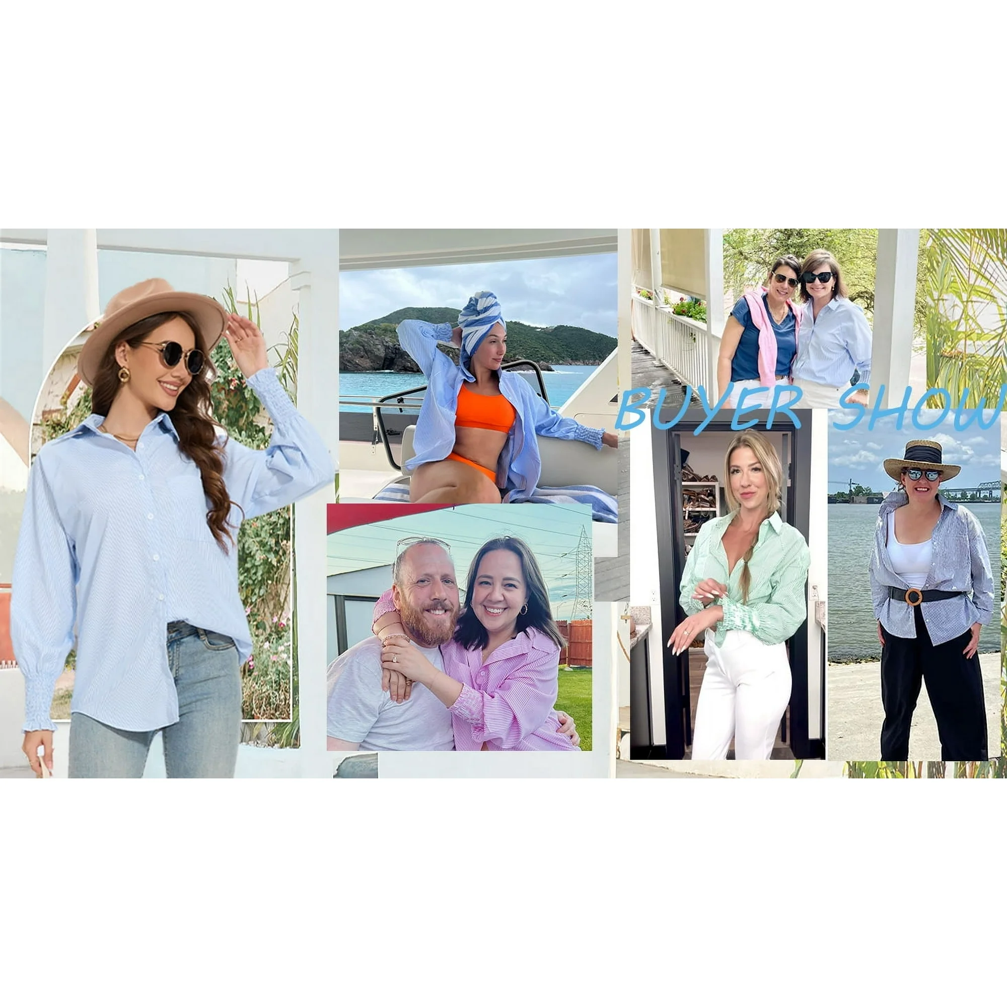 - 👚【Match】Womens long sleeve tops has great flexibility and variety in collocation, and can easily respond to various occasions and style needs. Pair a blouse with a pair of high-waisted jeans and casual shoes for a casual, spontaneous look. In the summer, button down shirts for women can be paired with high-waisted denim shorts and flat sandals for a cozy yet vibrant look.Striped tops for women with suit pants and black high heels, showing a capable and elegant workplace style, the overall shape is simple and generous, suitable for workplace commuting. Loose blouses for women with half skirt, suitable for vacation or beach walk, add romantic and soft holiday style. Add layer and warmth with a knitted vest over a womens shirts. Pair a short jacket or long trench coat over a smocked cuffed womens blouse for fall and winter.