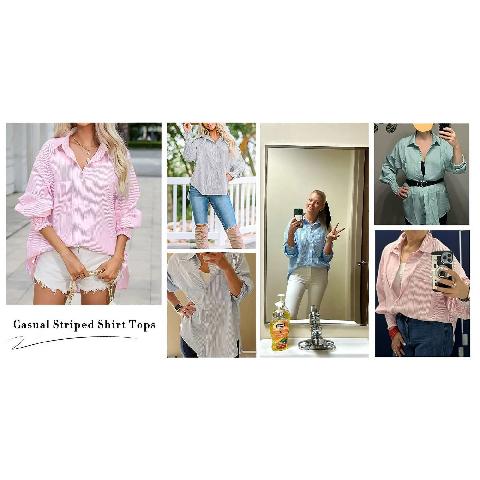 - 💖【Various Occasions】Women shirts, through exquisite design and versatile style, to meet your wearing needs in different occasions, show your fashion taste. Whether it’s a casual day, a workplace commute, a date party or a shopping outing, button down shirts for women is easy to wear and become a versatile piece in your wardrobe. Wear trendy womens tops to go shopping, relaxed and casual. Wear striped women blouses to a business meeting to be smart and elegant. Wear oversized shirts for woment to dinner with friends or partners, be comfortable, and show your elegant and charming side. Relax and enjoy the sun and sea breeze while on holiday by the sea in a womens fashion tops.