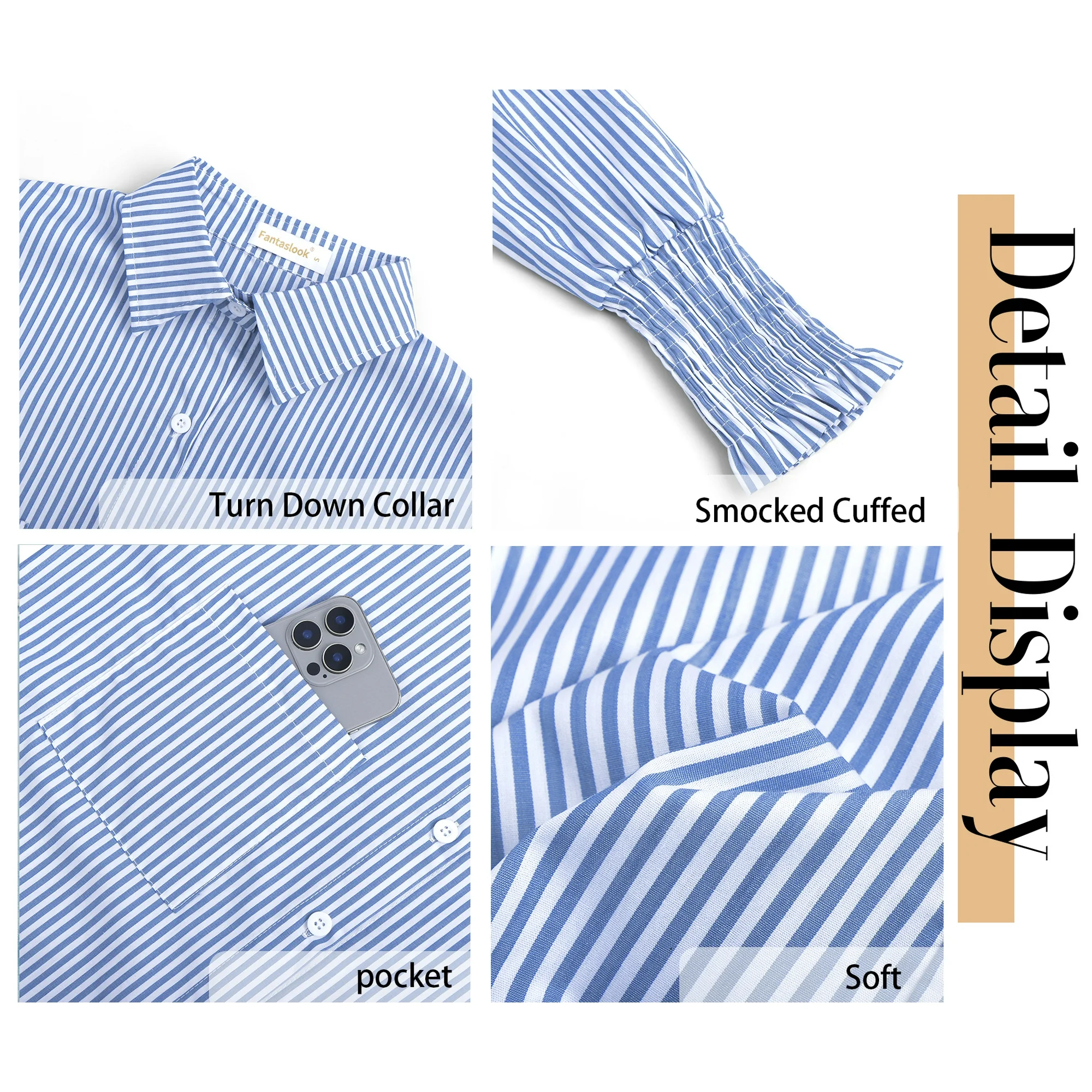 - ✨【Material】Oversized shirts for women, made of high quality fabric, soft and comfortable, good air permeability, suitable for long-term wear. The material of smocked cuffed women shirts is not easy to pilling, keep the clothes clean and beautiful. The excellent toughness of womens blouses casual makes the clothing not easy to deform and maintain a lasting beauty. The fabric of striped women tops is convenient for daily care. The overall material of long sleeve shirt women is light, wearing no burden, bringing excellent wearing experience.