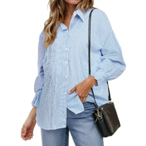 The unique elegant charm of womens shirts can achieve any match you wear and show fashion style. Long sleeve shirts for women adopt a loose version, suitable for all kinds of figures, bringing unfettered wearing experience. The delicate buttons of womens blouses can add layers and enhance the overall sense of fashion and design. The classic stripe pattern of a womens tops can visually elongate and flatter the figure. Button down shirts for women cuff is the most charming place, using the characteristic pleated cuff, elastic design, easy to wear and take off, different from other womens dressy blouses, add a hint of playful and clever, the details are exquisite. The front pocket of striped womens shirt increases the sense of design and makes the shirt no longer monotonous. The bottom of smocked cuffed shirts for women uses a circular hem, circular cutting allows you to create your bottom display at will, whether it is tucked into pants or naturally droop, or tied up, you can want to.