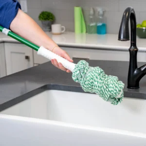 The Libman Tornado Mop covers 50 percent more surface area than its competitors, getting the job done faster. It is the ideal cleaning tool for many types of surfaces, plus it is made of heavy-duty yarn that is machine washable and easy to change. The Libman mop also comes with a grip ‘n click ratchet that wrings out more water, making it very effective and easy on the hands. Total weight 1.5lbs.