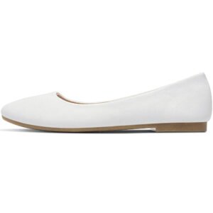 Obtaom Women’s Round Toe Ballet Flats,Cute Textile Ballerina Flats,Comfortable Faux Leather Insole Low Heels Dress Shoes For Ladies (White,US9)