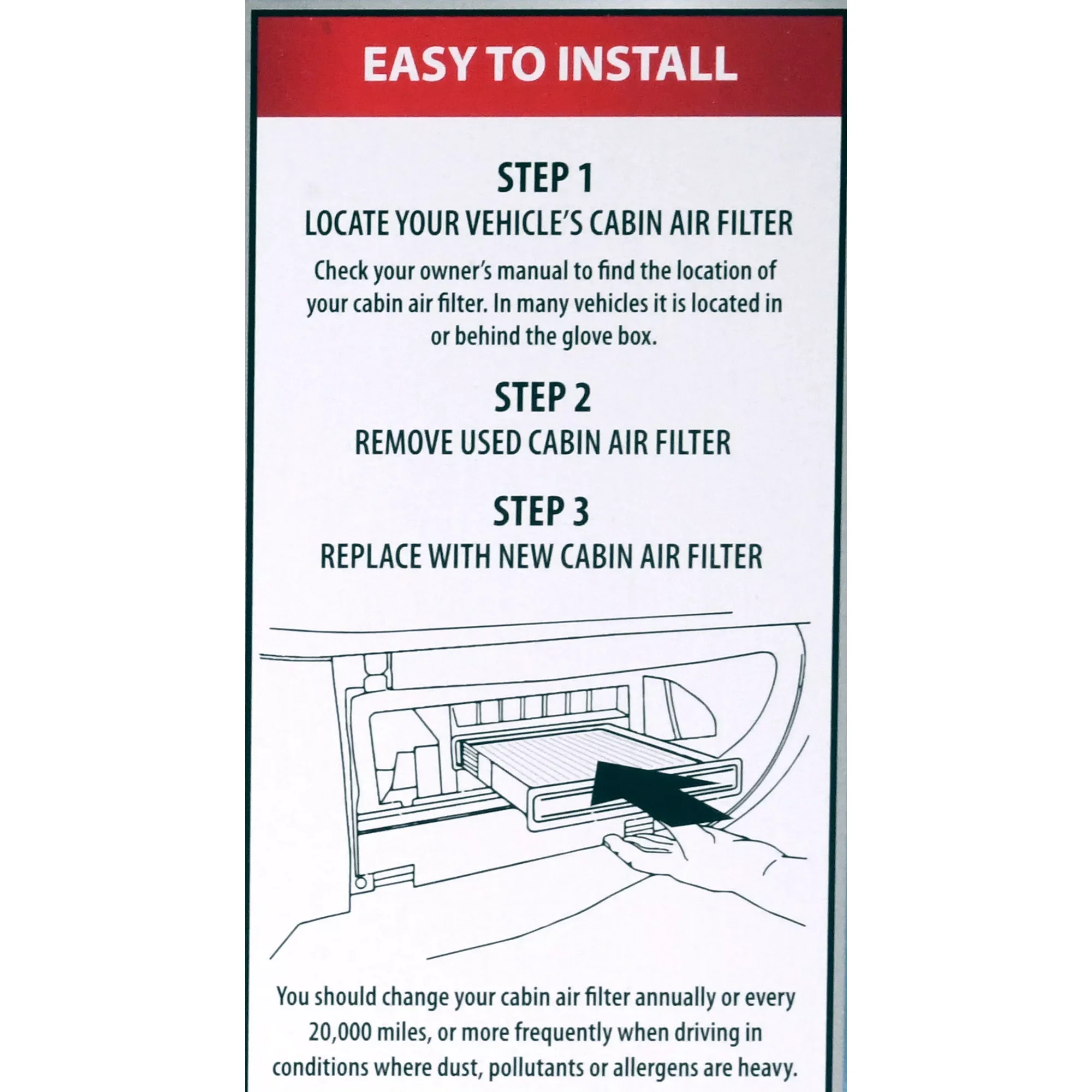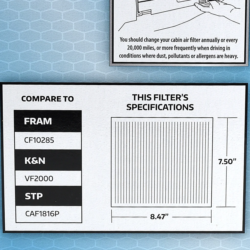 - Replacement air filter with superior cabin air protection