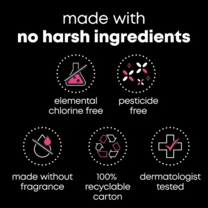 - No Harsh Ingredients: These panty liners for women are dermatologist-tested and made without fragrances, lotions, pesticides, elemental chlorine and natural rubber latex